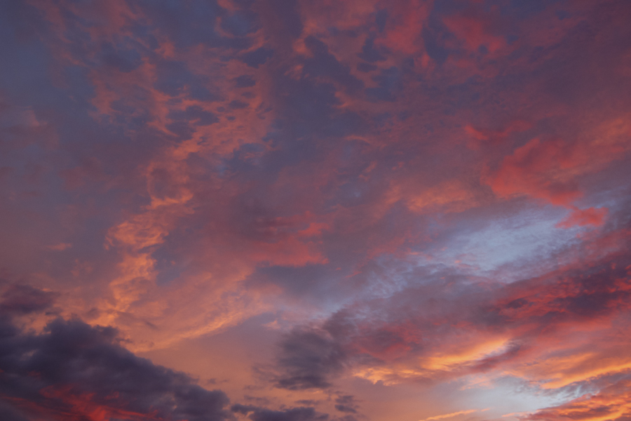 Growing up in a small town, I used to return home around sunset. As our street curved left the sky in the west opened up before me. Often, in the same spot, there was a birdlike stretch of clouds that the setting sun painted in tones of orange and red. I called it the phoenix. Seeing it made me feel warm but sad.